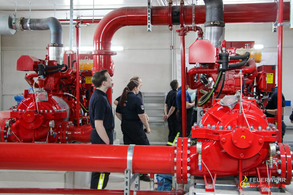 Im Verlauf ging es für die Teilnehmerinnen und Teilnehmer auf einen geführten Rundgang über das Gelände sowie in die diversen Gebäude, hierbei wurde an den entsprechenden Stellen insbesondere auch ein Bezug zu feuerwehrtechnischen Besonderheiten hergestellt.