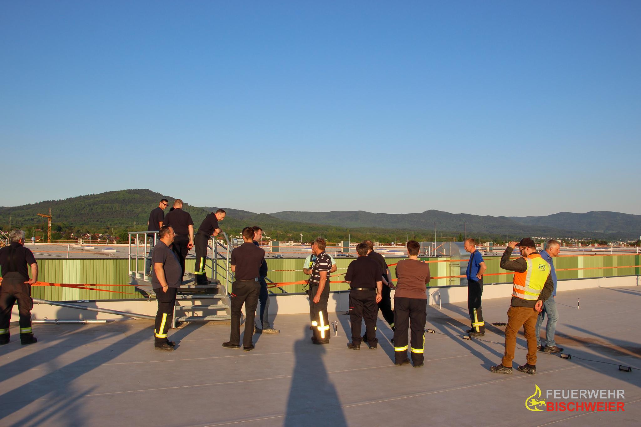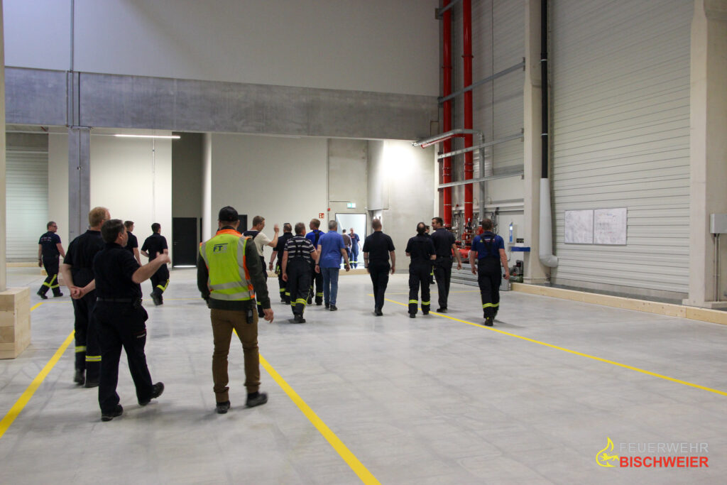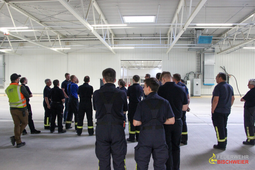 Ende April besuchten die Kameradinnen und Kameraden der Feuerwehr Bischweier im Rahmen eines Ausbildungsabends das Gelände des zukünftigen ICC im Gewerbegebiet Bischweier. Dort erhielten sie nach der Ankunft einen Überblick über die möglichen Anfahrtswege, erste Anlaufstellen im Einsatzfall, sowie eine grobe Einweisung in die verbaute Gebäudefunkanlage.