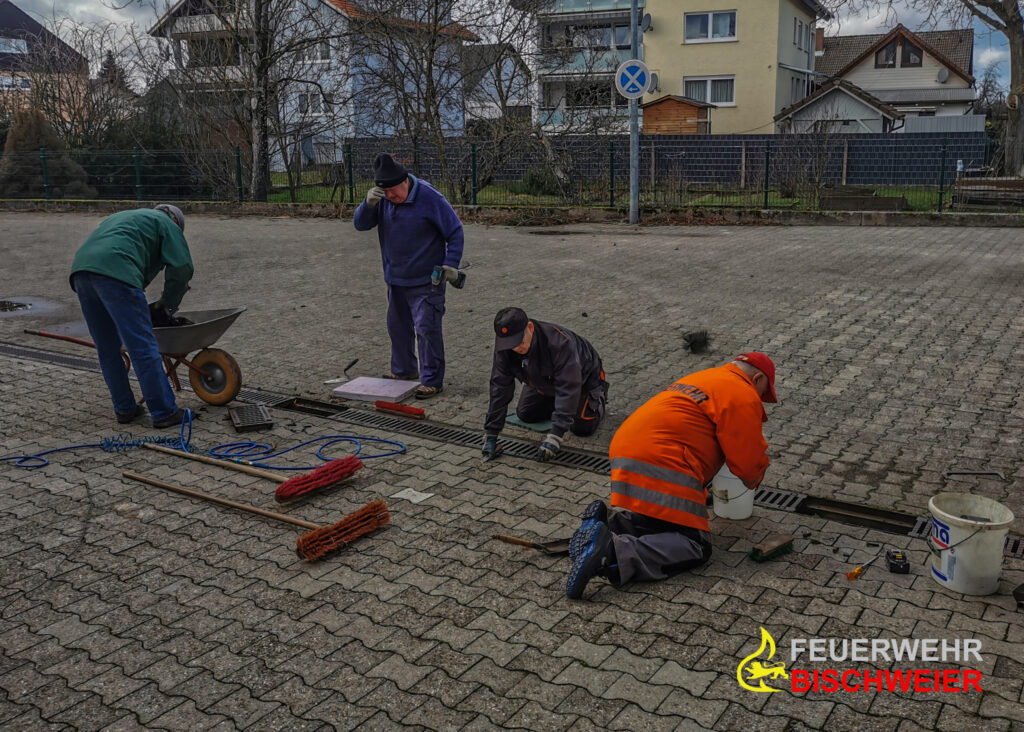 Eine fleißige Gruppe, rund um den Altersobmann Otto Dehmer, traf sich am frühen Nachmittag, um die Regenablaufrinne vor dem Gerätehaus zu reinigen. Dafür musste zunächst an einigen Stellen das Gitter entfernt werden, um anschließend die Rinne von Laub und weiterem Schmutz zu befreien. Abschließend wurde sie noch gereinigt und die Gitter wieder befestigt.