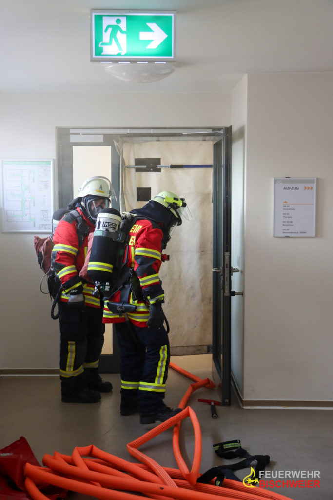 Zu einer ausgelösten Gefahrenmeldeanlage in der Wohngemeinschaft „Irene-Dekorsky-Haus“ der Lebenshilfe in Bischweier wurde die Kräfte von Feuerwehr und DRK am vergangenen Wochenende gerufen. Das Szenario stellte die diesjährige Alarmübung der Feuerwehr Bischweier dar.