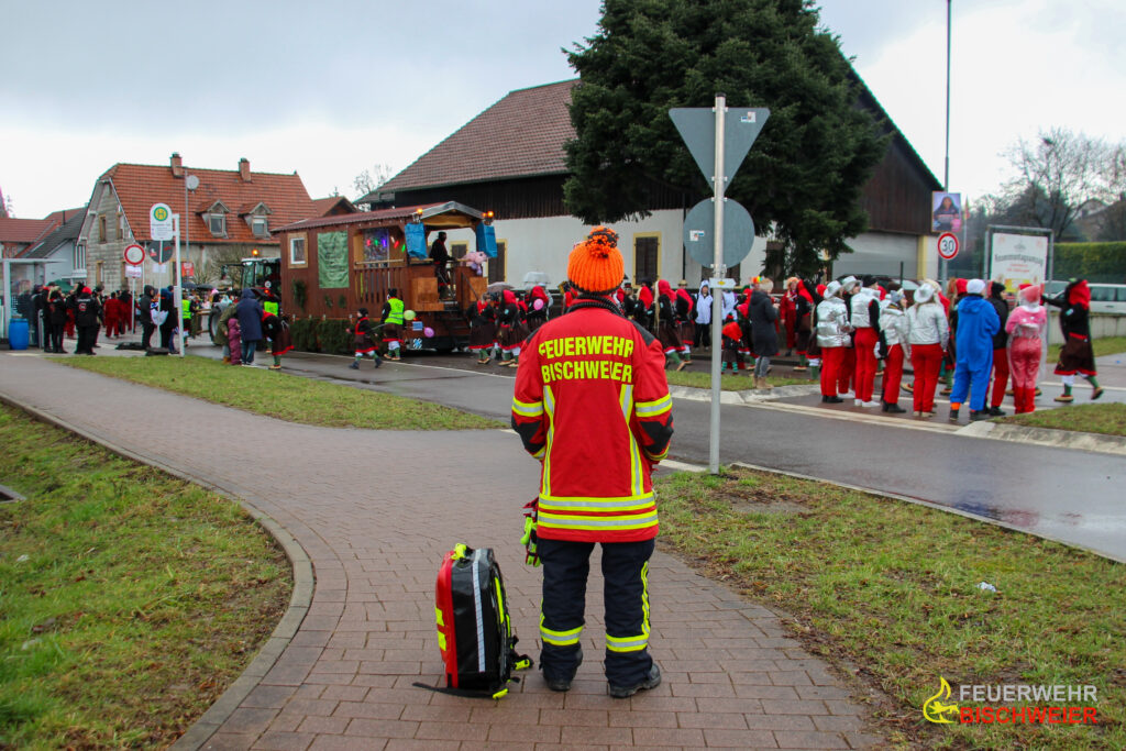 An der Absicherung des Rosenmontagszugs in Bischweier beteiligte sich in der vergangenen Woche die Feuerwehr Bischweier. Für einen reibungslosen Ablauf wurde der Sicherheitswachdienst erneut in enger Abstimmung mit den Kräften des Roten Kreuzes, der Polizei sowie dem durch die Veranstalter gestellten Sicherheitsdienst und den Ordnern durchgeführt.