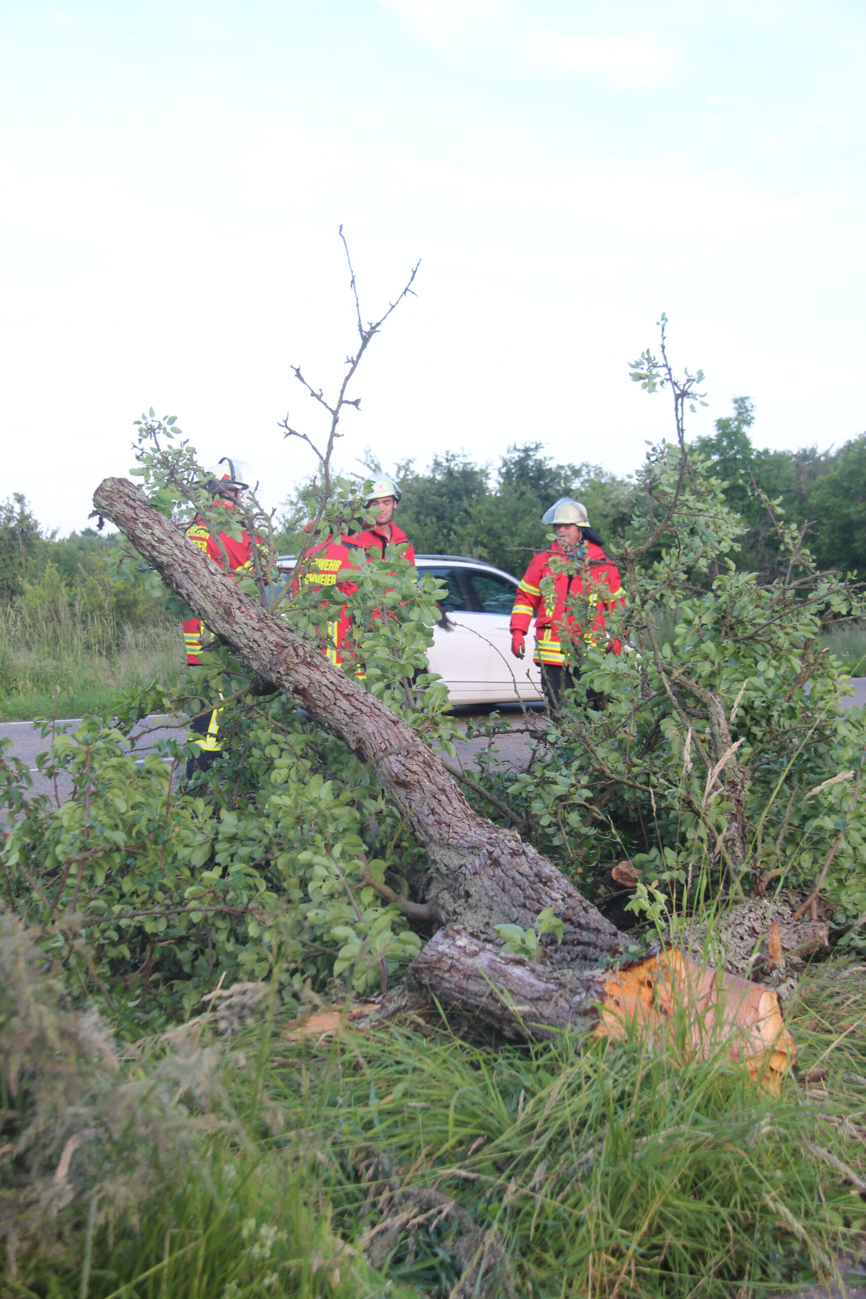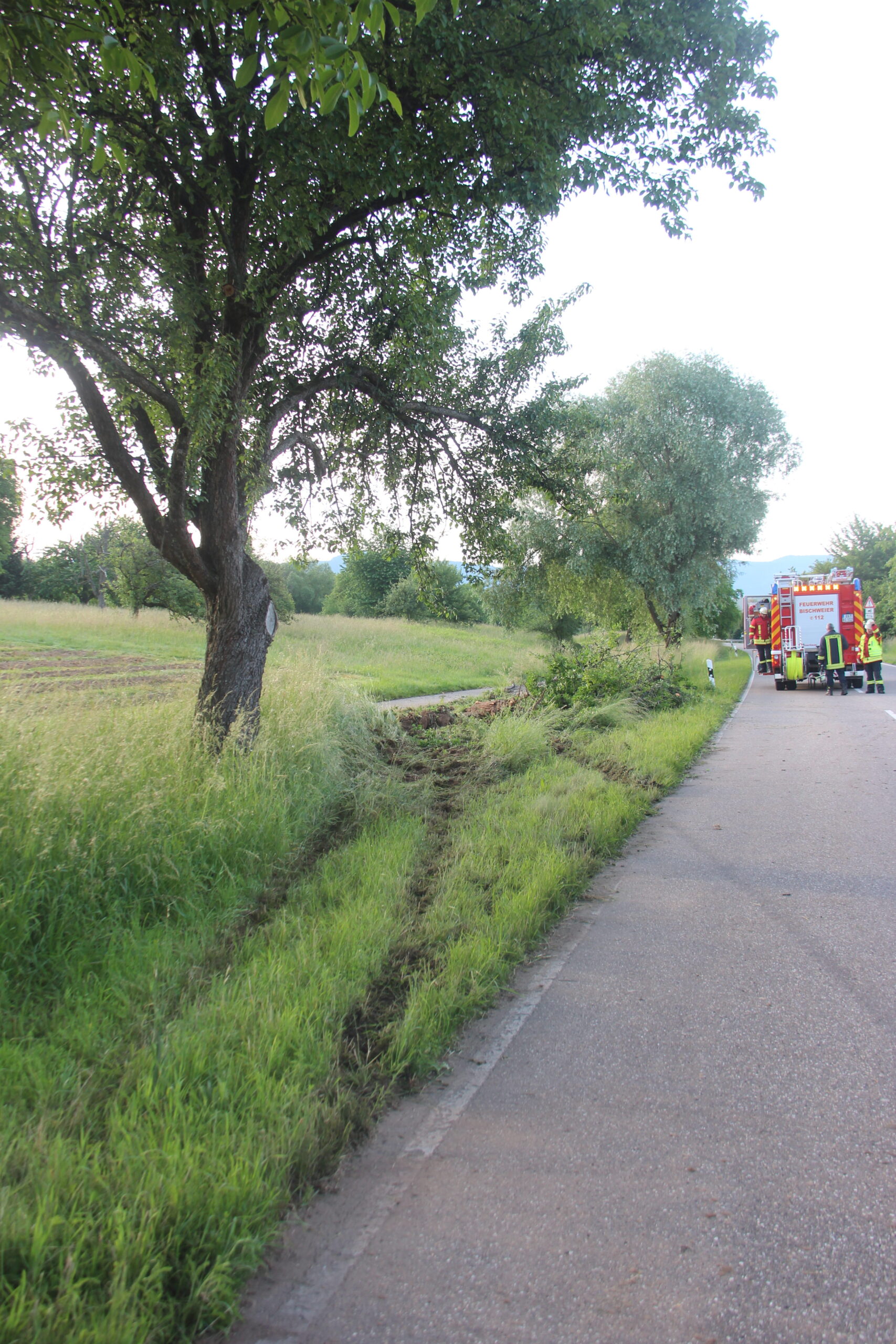 Die Feuerwehr Bischweier beseitigte mittels einer Motorsäge den Baum von der Fahrbahn. Die Kreisstraße 3737 und der parallel dazu verlaufende Geh- und Radweg wurde mit Besen gereinigt und für den Verkehr freigegeben.